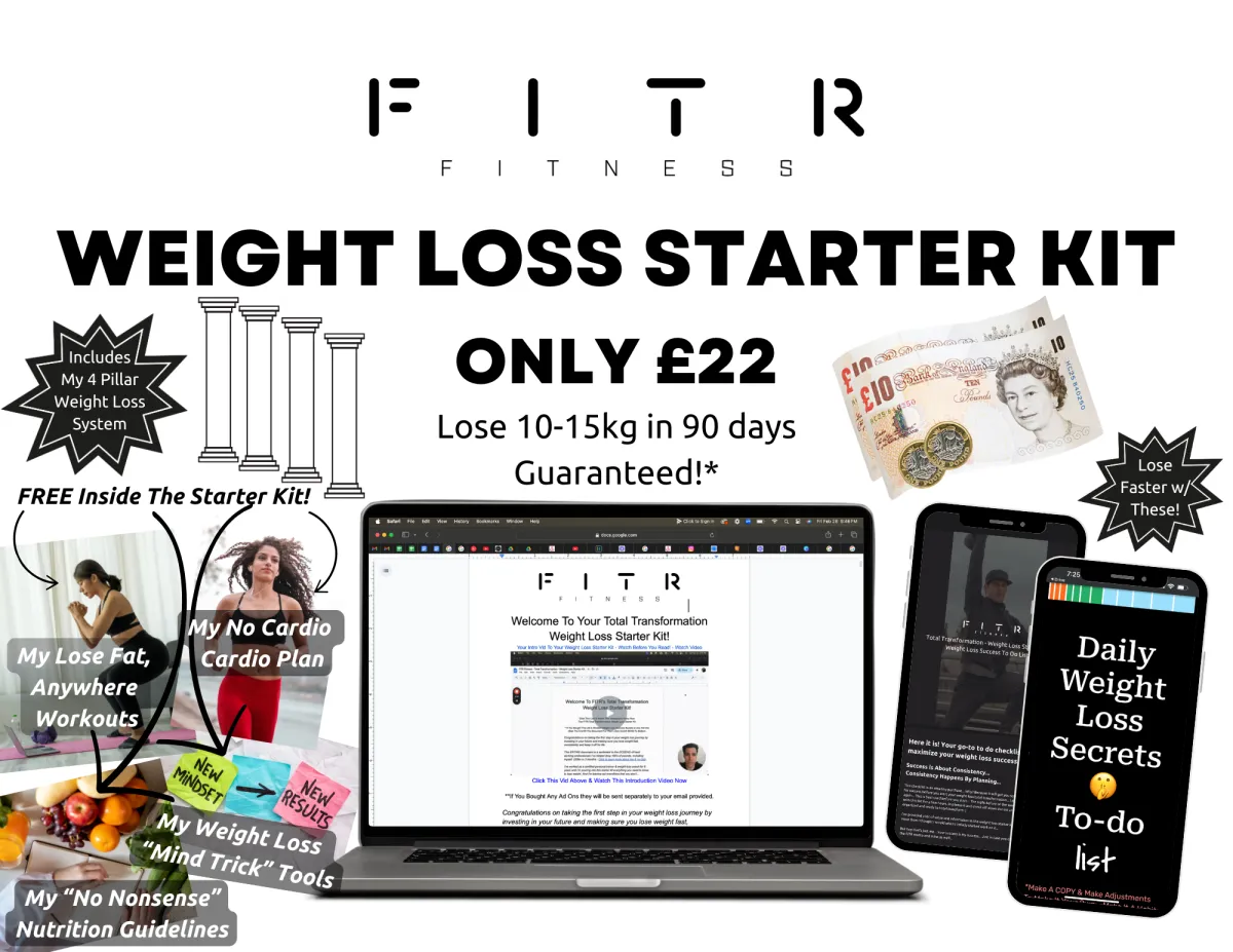 The Weight Loss Starter Kit that simplifies the weight loss journey no matter where you are. Whether you're just starting out, or been on a yo yo with your weight for years. Just follow, implement and customize my 4 Pillar System for you and your life and goals and you will lose 10-15kg in 90 Days!* (£157 Value)